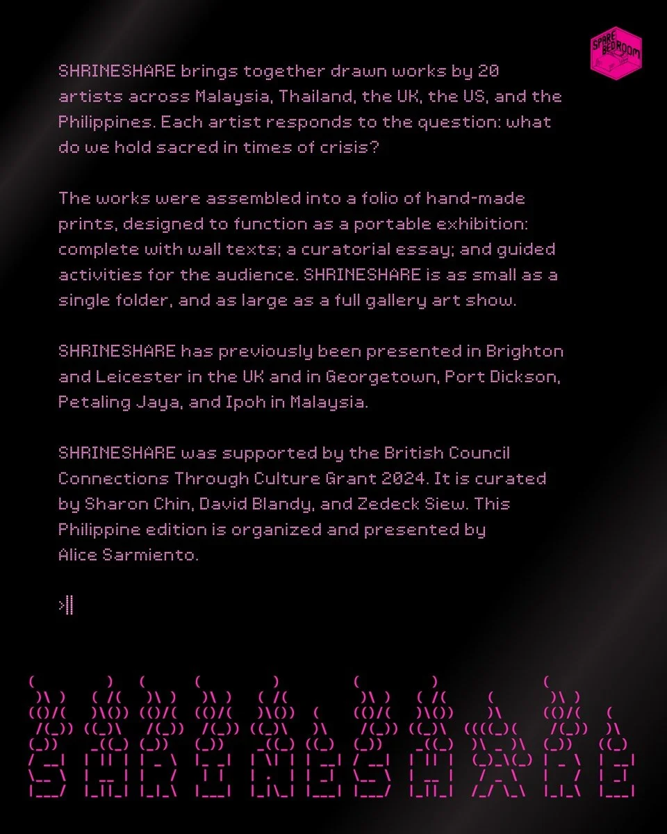 Shrineshare is Curated by Sharon Chin, David Blandy and Zedeck Siew